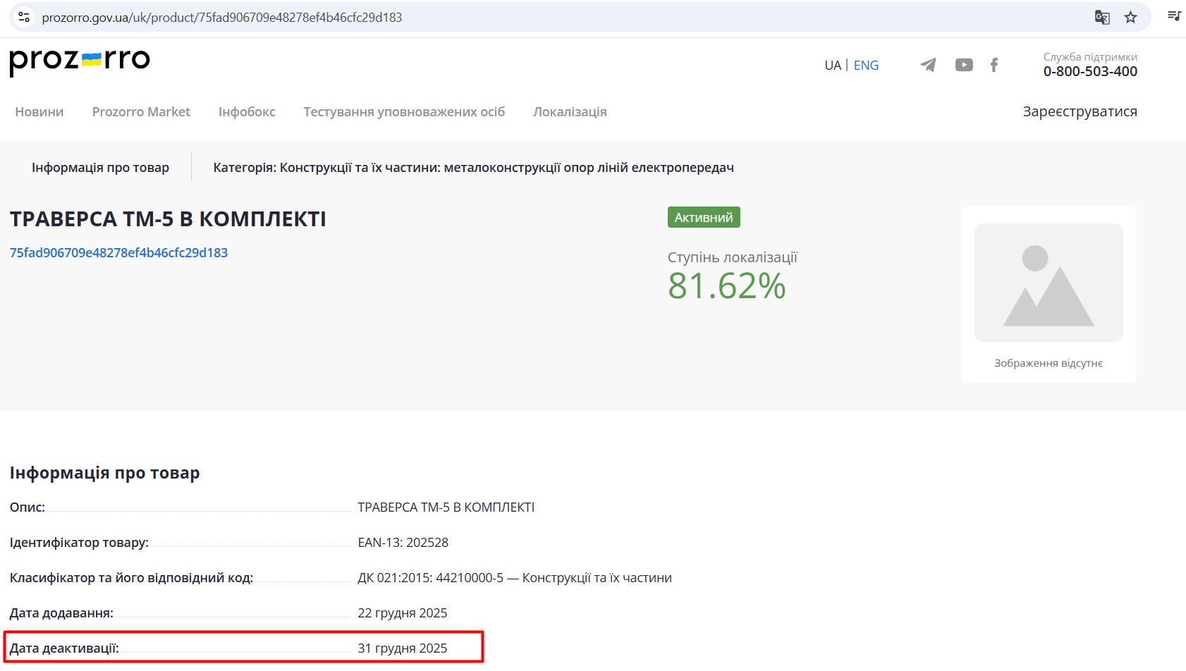Добрий день. З огляду на те, що 2025 рік добігає свого кінця, а замовники вже оголошують закупівлі, у яких кінцевий строк подання тендерних пропозицій припадає вже на перші числа січня 2026 року, то постає питання щодо підтвердження ступеня виробництва товарів, що передаються у власність замовника за результатами закупівель. А саме: Є великий сумнів, що більшість виробників встигнуть у перші числа січня 2026 року подати заявки про включення товару до Переліку товарів, що є предметом закупівлі, з підтвердженим ступенем локалізації виробництва (далі – Перелік) на 2026 рік (хіба що вони це зробили заздалегідь). Крім того, згідно із Законом, ступінь локалізації виробництва у 2026 році вже становитиме 30 відсотків; У всіх товарів, які містяться в Переліку, зазначена дата деактивації записів про включення товарів до переліку: 31 грудня 2025 року. І навіть, якщо ступінь локалізації їх виробництва відповідає рівню, встановленому на 2026 рік, учасники не зможуть використати такі товари для підтвердження своєї відповідності вимогам тендерних документацій щодо локалізації, оскільки записи будуть деактивовані. Встановлена в Переліку дата деактивації записів про включення товарів до переліку суперечить нормі, зазначеній в пункті 10. Порядку підтвердження ступеня локалізації виробництва товарів, затвердженого постановою Кабінету Міністрів України від 2 серпня 2022 р. №861 (далі – Порядок). А саме, в пункті 10 Порядку зазначено наступне: «Перелік формується щороку за результатами автоматичного опрацювання поданих виробником заявок на веб-порталі. ЗАПИС ПРО ВКЛЮЧЕННЯ ТОВАРУ ДО ПЕРЕЛІКУ ЧИННИЙ ПРОТЯГОМ РОКУ, В ЯКОМУ БУЛА ПОДАНА ЗАЯВКА ТА ДО 31 БЕРЕЗНЯ НАСТУПНОГО РОКУ. {АБЗАЦ ДРУГИЙ ПУНКТУ 10 ІЗ ЗМІНАМИ, ВНЕСЕНИМИ ЗГІДНО З ПОСТАНОВОЮ КМ № 1293 ВІД 10.10.2025}» Тобто, враховуючи зміни до Порядку від 10.10.2025 року, записи про включення товарів до переліку, внесені у 2025 році, повинні мати дату деактивації 31 березня 2026 року, за умови відповідності ступеня локалізації виробництва вимогам Закону. Враховуючи вищевикладене, прошу Вас виправити дату деактивації записів про включення товарів до переліку з «31 грудня 2025 року» на «31 березня 2026 року» в Переліку товарів, що є предметом закупівлі, з підтвердженим ступенем локалізації виробництва. У випадку відмови у виправленні дати деактивації записів про включення товарів до переліку, прошу Вас надати роз’яснення, яким чином учасникам здійснювати підтвердження своєї відповідності вимогам тендерних документацій щодо локалізації при поданні своїх тендерних пропозиції на початку 2026 року, а саме з 01.01.2026 року. |