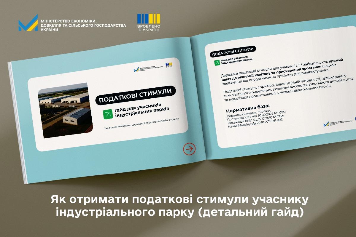 Розвиток індустріальних парків — один із пріоритетів державної промислової політики та складова політики «Зроблено в Україні». Учасники індустріальних парків можуть отримати податкові та митні стимули, а ініціатори створення та керуючі компанії — державне стимулювання на розвиток інфраструктури, що сприяє створенню нових виробництв, залученню інвестицій та зміцненню економічного потенціалу регіонів.