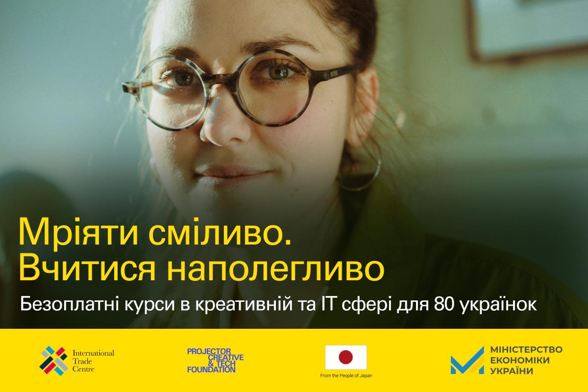 29.05.2025 | 09:43 | Відділ зв’язків з громадськістю та засобами масової інформаціїProjector Foundation за підтримки International Trade Centre (ITC) оголошує набір на безоплатне онлайн-навчання у сфері креативних та IT індустрій для жінок в Україні. Освіта дозволить їм здобути нові професійні навички, створити професійне портфоліо, отримати підтримку у вигляді HR-воркшопів та менторських сесій.