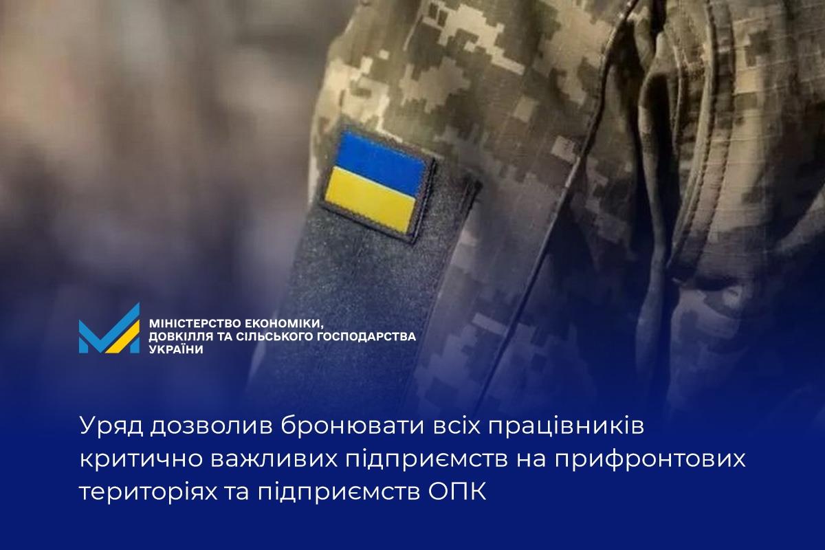 Уряд дозволив бронювати всіх працівників критично важливих підприємств на прифронтових територіях та підприємств ОПК