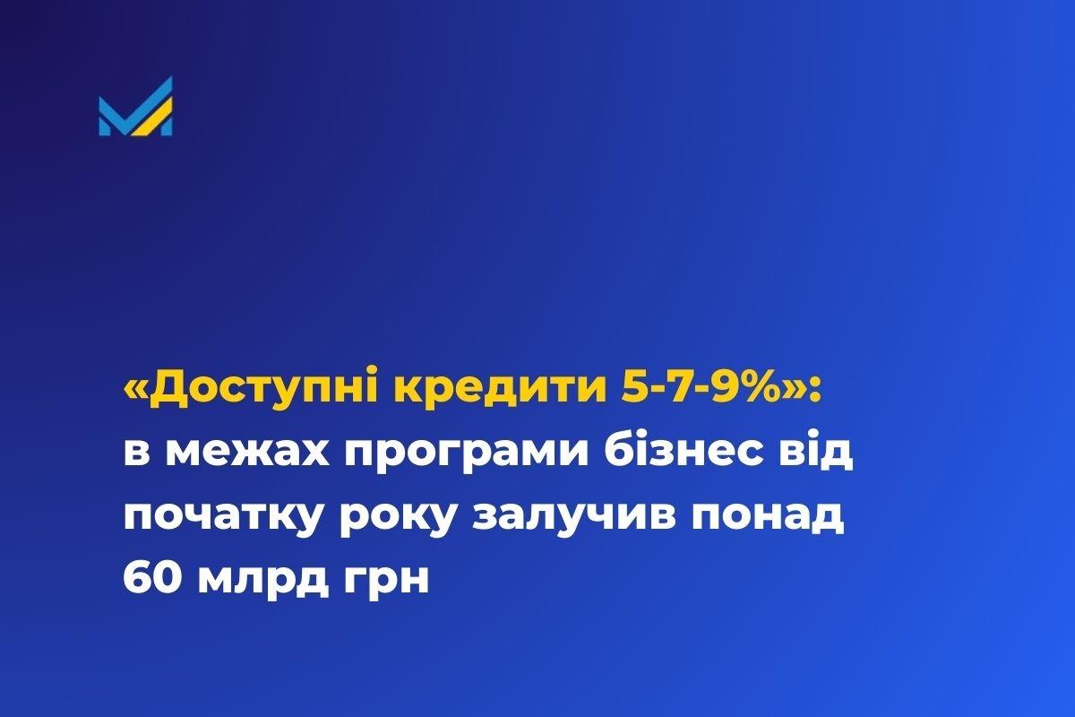 З початку 2025 року в межах програми «Доступні кредити 5-7-9%» бізнес залучив 20,5 тис кредитів на загальну суму 60,3 млрд грн. Зокрема, за минулий тиждень підприємці оформили 452 кредити на суму понад 0,8 млрд грн.