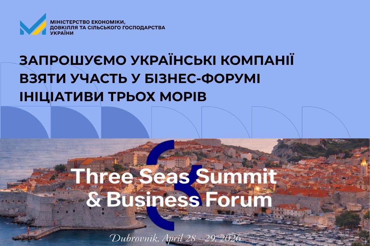 31.03.2026 | 16:00 | Відділ зв’язків з громадськістю та засобами масової інформаціїМіністерство економіки, довкілля та сільського господарства України запрошує українські компанії долучитися до бізнес-форуму Ініціативи Трьох морів (ІТМ).