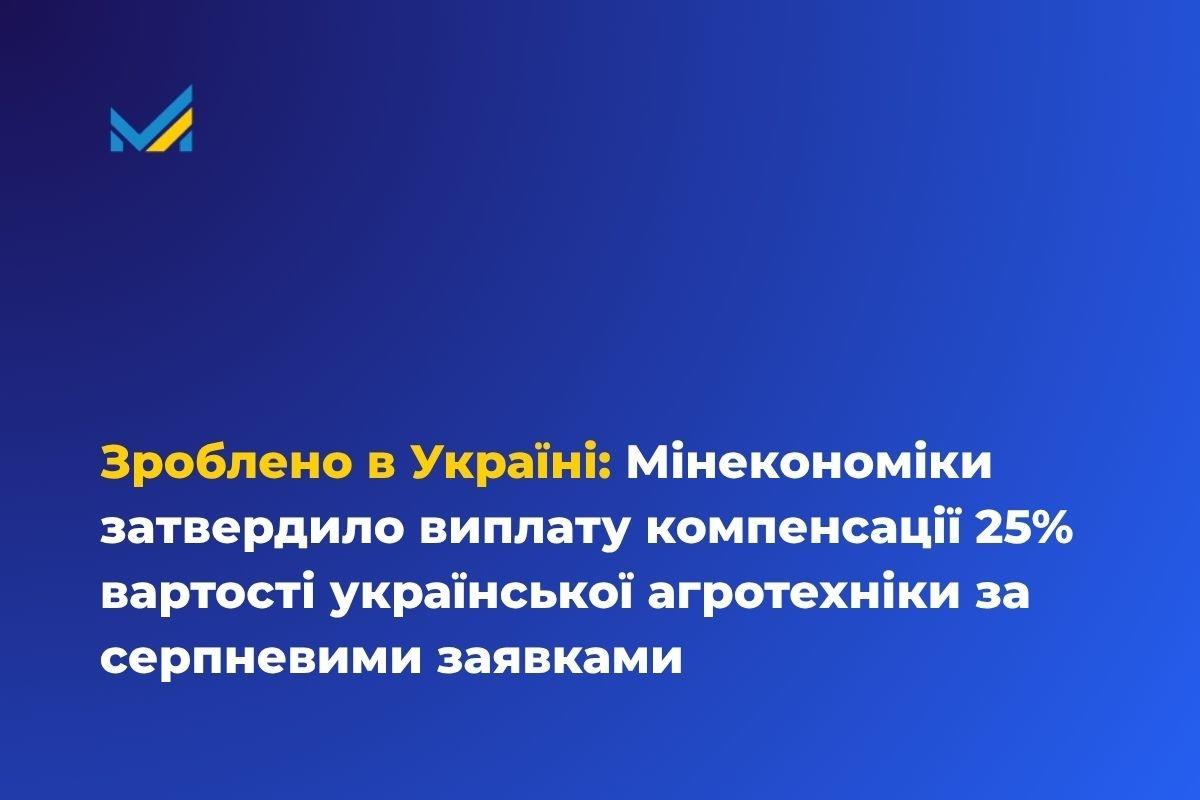 Зроблено в Україні: Мінекономіки затвердило виплату компенсації 25% вартості української агротехніки за серпневими заявками