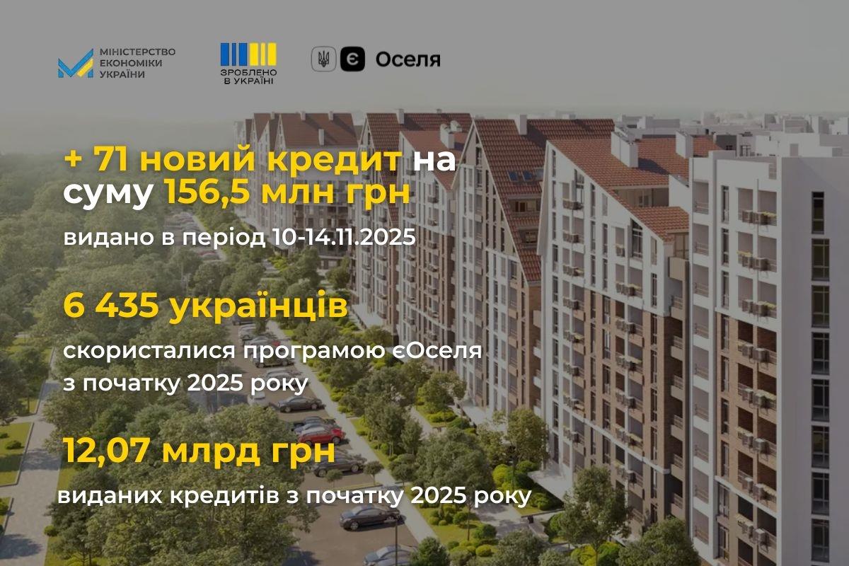 Загалом, з початку 2025 року скористалися програмою єОселя 6 435 українці й отримали пільгових іпотек на суму 12,07 млрд грн.