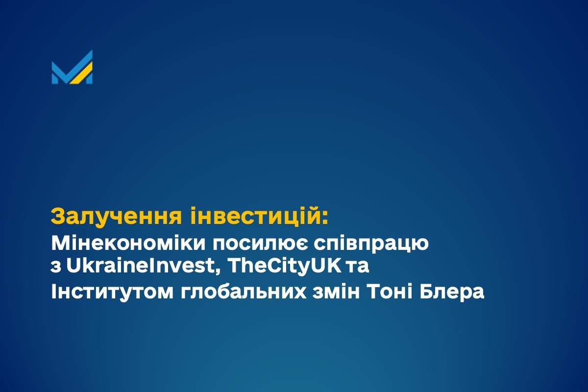 Залучення інвестицій: Мінекономіки посилює співпрацю з Юкрейнінвест, TheCityUK та Інститутом глобальних змін Тоні Блера