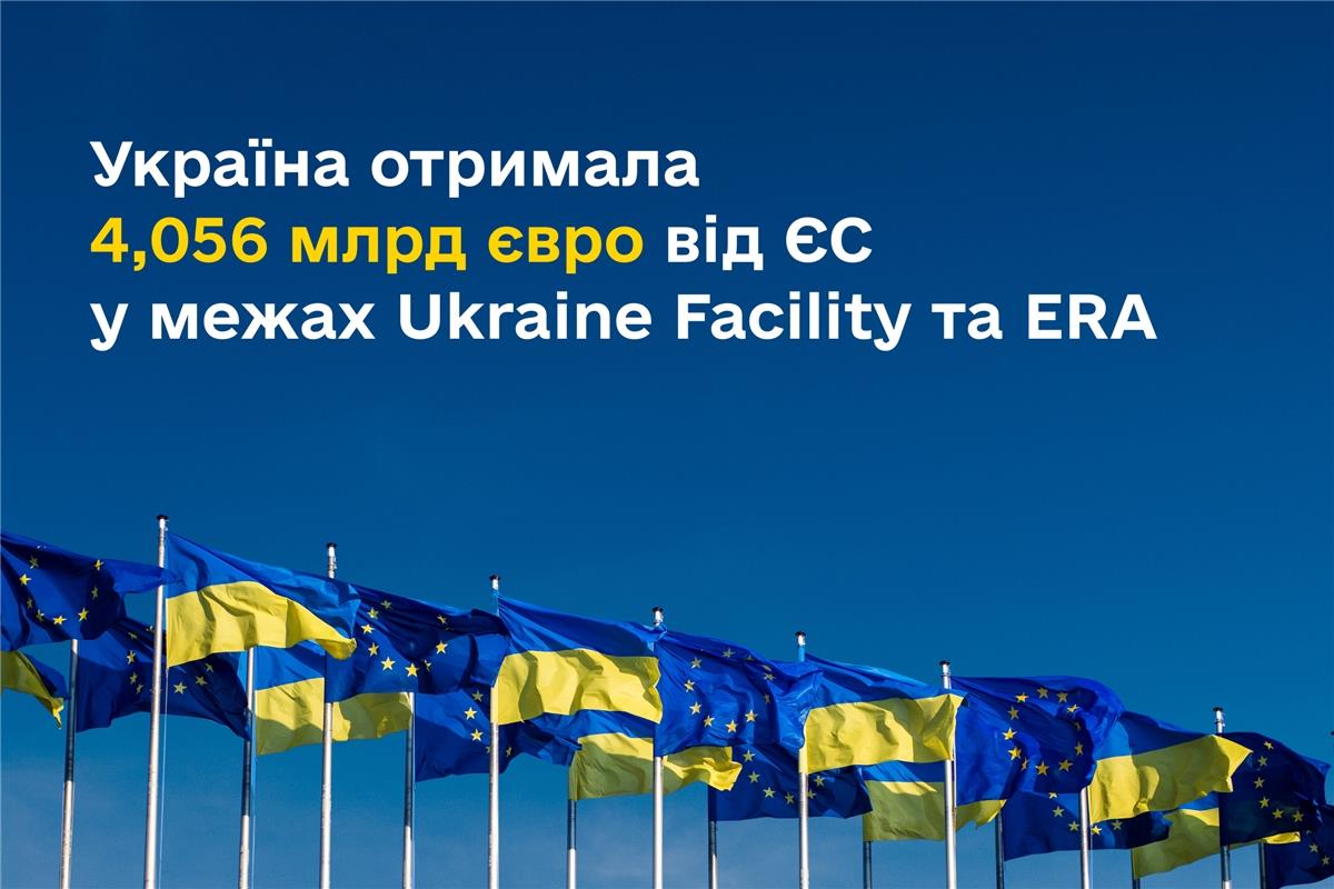 Україна отримала 4,056 млрд євро від ЄС у межах Ukraine Facility та ERA