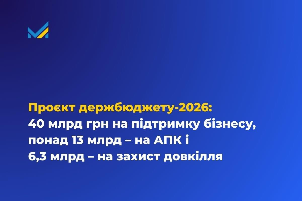 Проєкт держбюджету-2026: 40 млрд грн на розвиток українського виробництва, понад 13 млрд — на АПК і 6,3 млрд — на захист довкілля