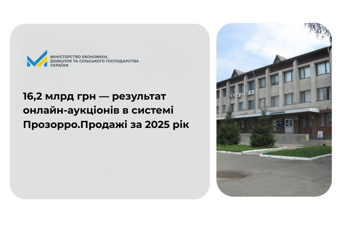 16,2 млрд грн — результат онлайн-аукціонів в системі Прозорро.Продажі за 2025 рік