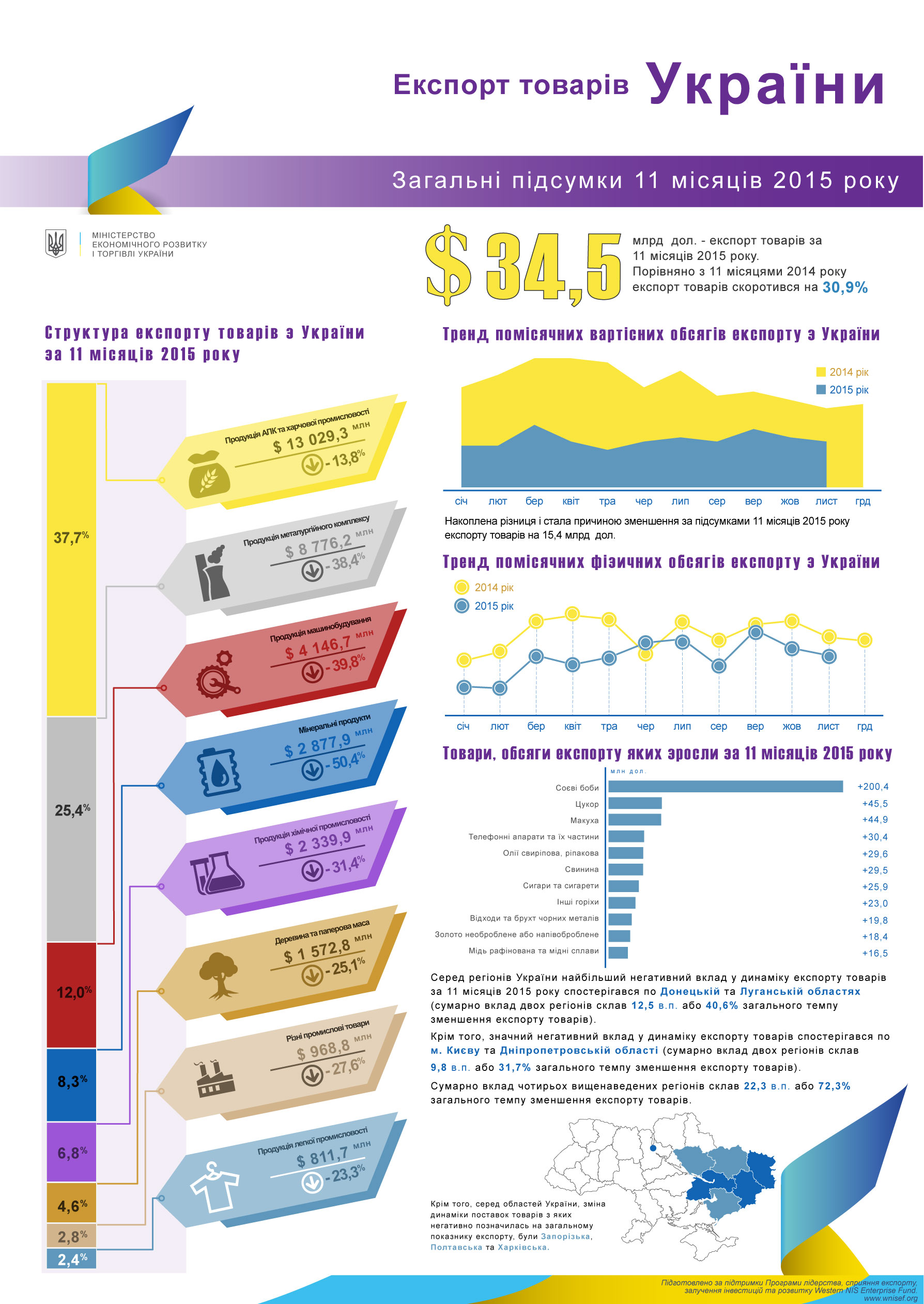 Експорт товарів України. Загальні підсумки 11 місяців 2015 року
