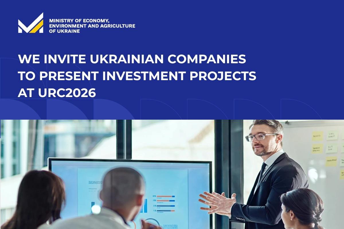 As part of the preparations for the Ukraine Recovery Conference (URC2026) in Gdansk on 25-26 June 2026, the Ministry of Economy, Environment and Agriculture of Ukraine with the support of Kyiv School of Economics is collecting proposals from companies working on investment projects and seeking external financing. Submissions are open until 30 April 2026.