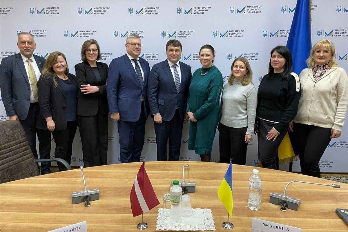23.02.2024 | 10:34 | Відділ зв’язків з громадськістю та засобами масової інформаціїЗміцнення торговельно-економічних відносин, посилення співпраці у відбудові України, інвестиції в розвиток ключових секторів, програми підтримки приватного сектору та інші питання обговорювали під час зустрічі заступниці Міністра економіки України Надії Бігун з делегацією Латвійської Республіки на чолі з Державним секретарем Міністерства економіки Латвії Едмундсом Валантісом. В зустрічі також взяли участь Надзвичайний та Повноважний Посол Латвійської Республіки в Україні Ілгварс Клява, керівник представництва Латвійського агентства інвестицій та розвитку в Україні Айнарс Межуліс.