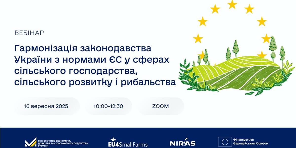 Запрошуємо на вебінар щодо гармонізації законодавства України з нормами ЄС у сферах сільського господарства, сільського розвитку і рибальства