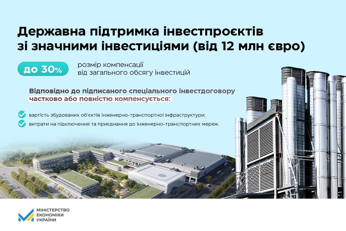 Нагадаємо, що при реалізації інвестиційних проєктів зі значними інвестиціями, інвестори, можуть отримати від держави декілька видів підтримки, які складають до 30% від загальної суми такого інвестиційного проєкту. Зокрема: