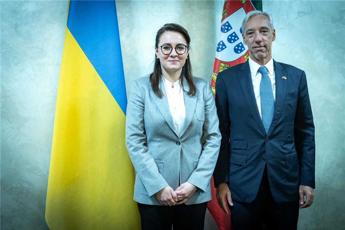 03.10.2023 | 12:23 | Відділ зв’язків з громадськістю та засобами масової інформаціїПідтримка відновлення України, страхування бізнесу, подальша європейської інтеграція України, Формула миру та поглиблення економічної співпраці – такі теми обговорили Перший віцепрем’єр-міністр України – Міністр економіки України Юлія Свириденко з Міністром закордонних справ Португальської Республіки Жуау Гомеш Кравінью 2 жовтня. Також до зустрічі приєднався Надзвичайний і Повноважний Посол Португальської Республіки в Україні Антоніу Вашку Алвеш Машаду.