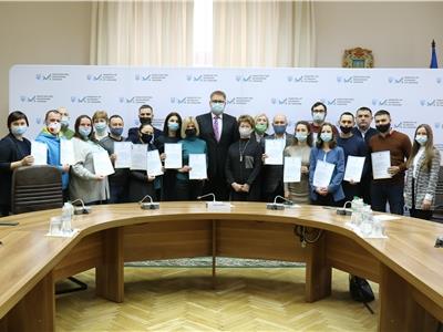 26.01.2022 | 15:53 | Відділ зв’язків з громадськістю та засобами масової інформації26 січня у Мінекономіки відбулося офіційне вручення свідоцтв інспектора з органічного виробництва. В заході взяв участь заступник Міністра економіки України – Торговий представник України Тарас Качка. Свідоцтва отримали 22 інспектора, які успішно здали тести на знання законодавства України у сфері органічного виробництва, обігу та маркування органічної продукції та спеціальні знання у галузях органічного виробництва.