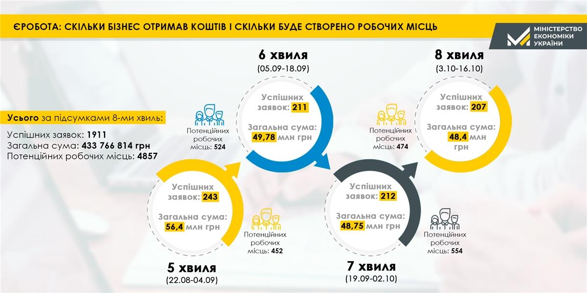 «Мікрогранти на старт та розвиток бізнесу є найбільш популярною програмою проекту “єРобота”. Незважаючи на те, що програма вже діє чотири місяці, інтерес до неї серед малого бізнесу не зменшується. Кожні два тижні ми стабільно маємо понад дві сотні нових проектів, які потенційно мають створити близько півтисячі нових робочих місць. За результатами восьми хвиль цієї програми визначено 1,9 тисячі переможців, які створять під час реалізації своїх проектів 4500 нових робочих місць», - зазначила Юлія Свириденко.