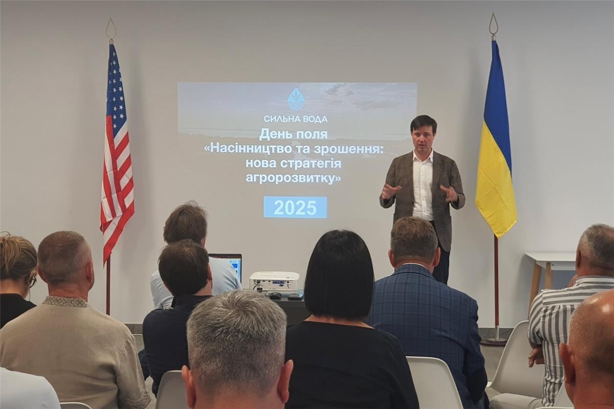 День поля відбувся на базі ОВК «Сильна вода», яка завдяки співінвестиціям від Програми АГРО, що фінансується Урядом США, відновила насосну станцію, що не працювала майже 30 років, встановила 5 дощувальних машин, а також розпочала встановлення сонячної електростанції. Це дозволило відновити полив на площі 1127 гектарів та суттєво оптимізувати використання ресурсів для забезпечення поливу.