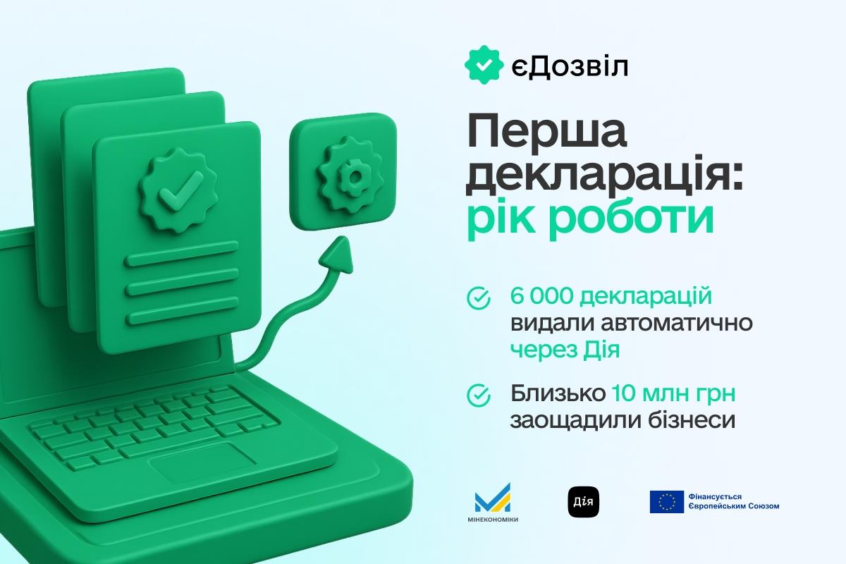 Платформа єДозвіл спростила отримання дозвільних документів для бізнесу. Першою декларативною послугою стала можливість оформлення декларацій на відповідність матеріально-технічної бази вимогам законодавства з охорони праці. За понад рік нею вже скористалися більше 6000 підприємців.